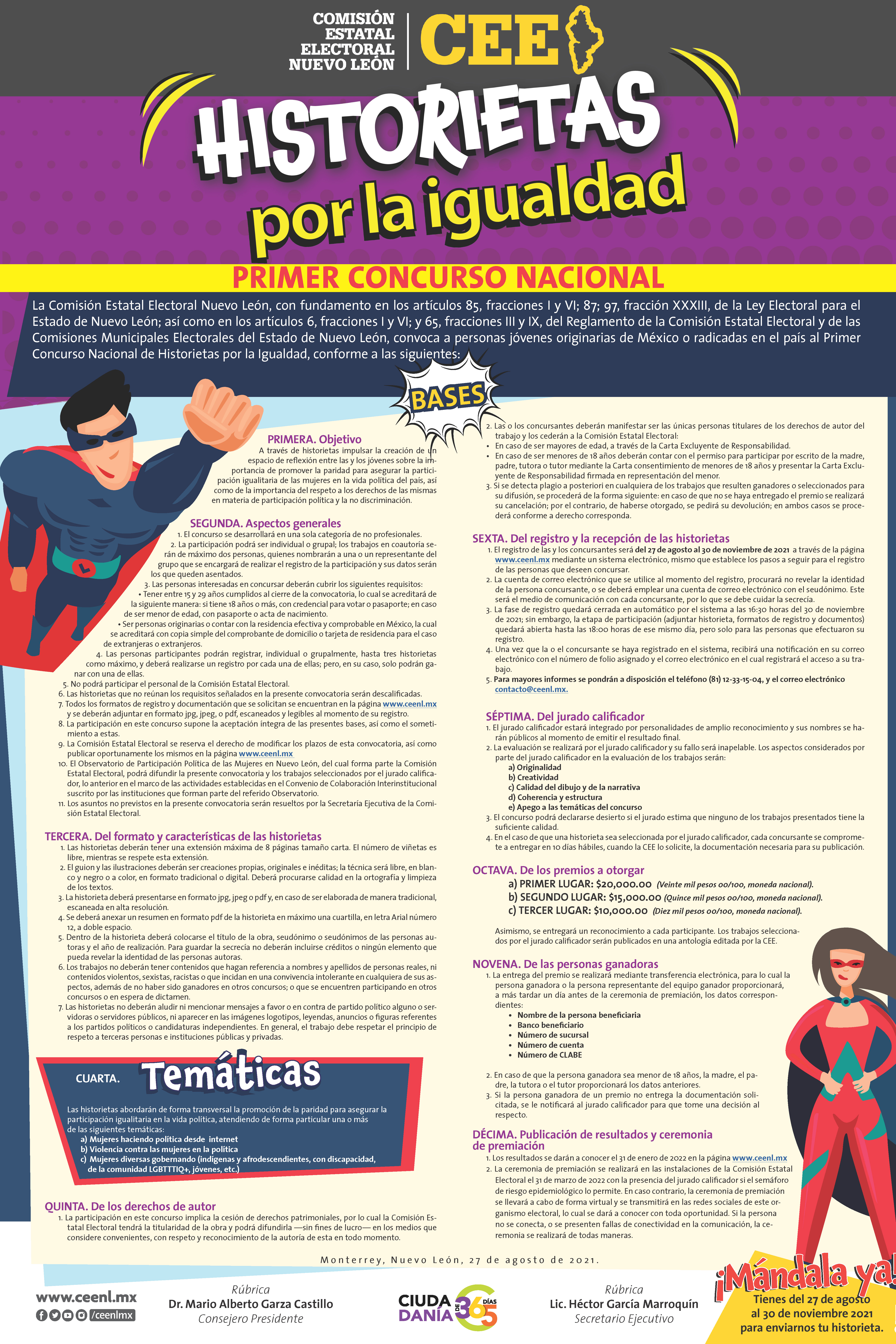 El periodo de registro y recepción de las historietas comienza el 27 de agosto y concluye el 30 de noviembre de 2021.